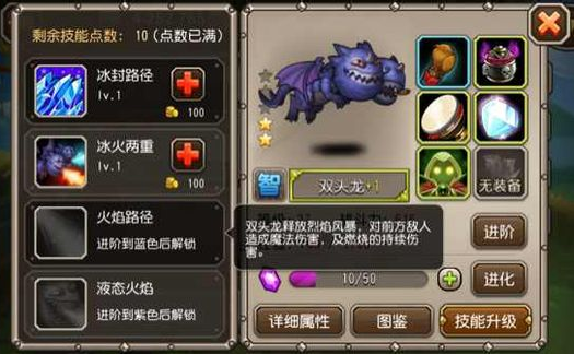 双头龙的一个脑袋吐出冰一个脑袋突出火焰,并对敌人造成两次的魔法伤害,伤害值相当可观。
