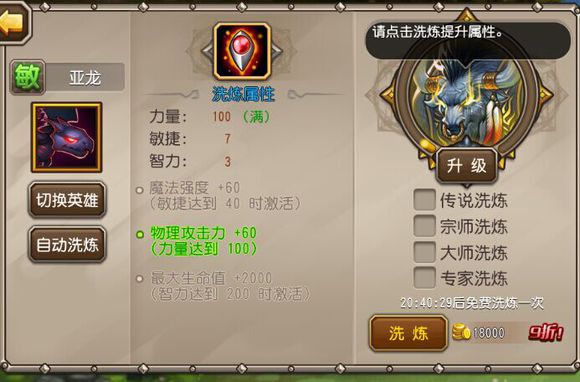 亚龙的双洗就是洗出敏捷和力量,这样可以较高的输出,还附带魔法强度和血量的提升还是不错的。