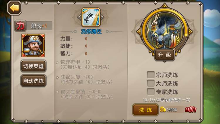 船长洗练的第一种方法是单洗力量,可以直接洗到100,这样血量和攻击力有了很好的提升,而且激活了物理护甲+10也是不错的。