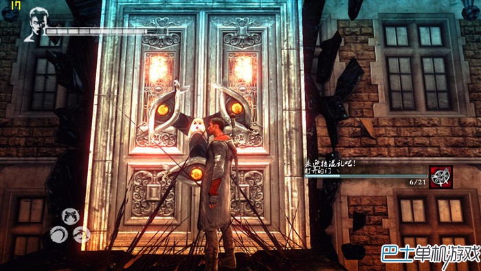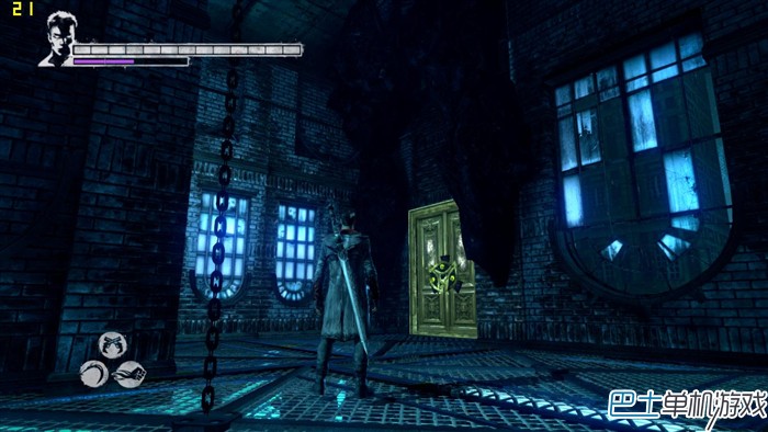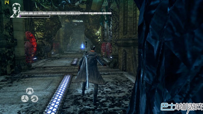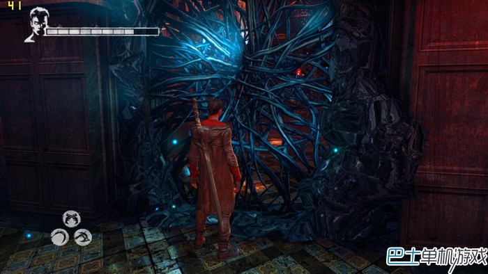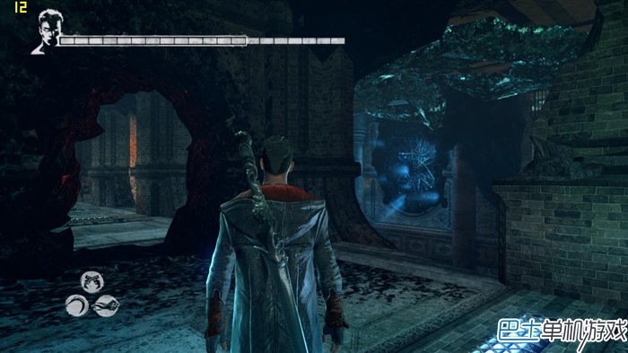 完成秘密关卡后可以获得生命十字架碎片一个。从秘密关卡出来后,你就看到了但丁妈妈的身影,跟随妈妈的身影前进。然后还会遇到一个蓝色发光藤蔓门,使