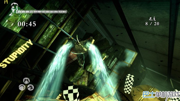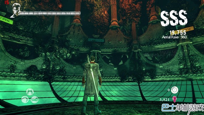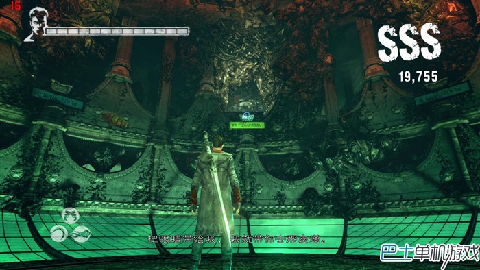 这里的任务是击杀虽有敌人,但是敌人和但丁都是一击即死了,所以你不能受伤,和之前秘密关卡无瑕征服一样。这里的敌人是由一个迟钝恶魔和四只持盾蜜蜂 组成的。先不断的跳跃,同时使用魔蛇鞭将蜜蜂的盾都扯掉,然后各个击杀。消灭了空中飞的,地上跑的就好搞定更多了。使用圣蛇鞭不断将自己拖拽位移,这样可 以很快的躲避攻击,也能盯住一个敌人猛烈攻击。
