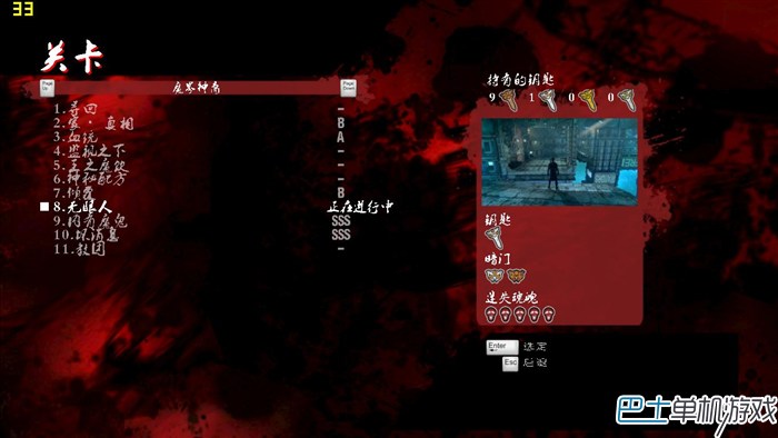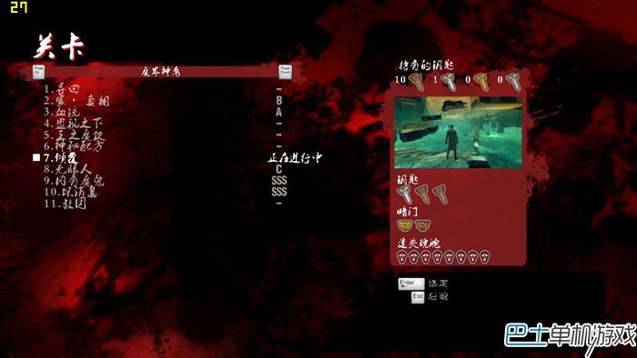 在跟随妈妈一直走,出现第二次建筑破碎,你需要到达对面的一个红色亮光的木门处,砍碎门,进去后,第一个右转处,你会先看到一个迷失魂魄,这里你必须 已经具备了圣能翔跃,不然是跳不过去了,跳过去,走进那个房间,右边就有一个暗门,这个秘密关卡的任务是在限定时间里获得S等级评价,其实主要就是不能受 到攻击,因为被攻击后等级会降的很快!多使用空中打击,和各类武器多切换有利于加分。