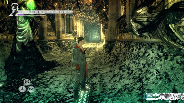 从记忆中回来后,但丁来到这个地方,然后先会出来两只变异老鼠,之后是一个女巫和几个小怪。女巫会将保护罩不断的转移给其他小兵,所以消灭女巫是首要任务!