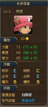 乔巴在游戏前期十分好用,进阶的话也是有限选择的对象,堪可一用。