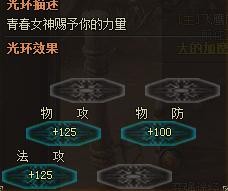 青春女神的光环为物攻、法攻和物防,战士们可以更多的考虑这个女神,但是法师由于只能用到法攻,所以很多法师朋友都不喜欢这个女神。如果前期一直在使用首冲的月之女神,当拥有青春之后就可以考虑让月之退役了。