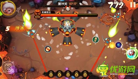 技能是击杀怪物的最佳手段,可以在游戏里利用各种随机出现的技能击杀怪物。第一章第六关属于新手类关卡,系统给出的技能大多数都比较基础,主要有可以冰冻 怪物的北极冰封,全屏弹射伤害的弹球飞鞋,对怪物造成范围性伤害的地狱火炮,如果前期获得了系统赠送的技能旋风拐杖,可以有效的利用这个技能对怪物造成高 额伤害。合理的利用这些技能,对死神造成大量伤害,是取胜的关键。在关卡最后,会出现最终BOSS,这时要快速移动,不断的吃系统随机出现的技能,对其造 成伤害达成通关。