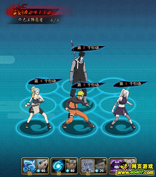 等全部忍者都摆放好了之后, 挪动一下水主,挪动一下鸣人就可以了。