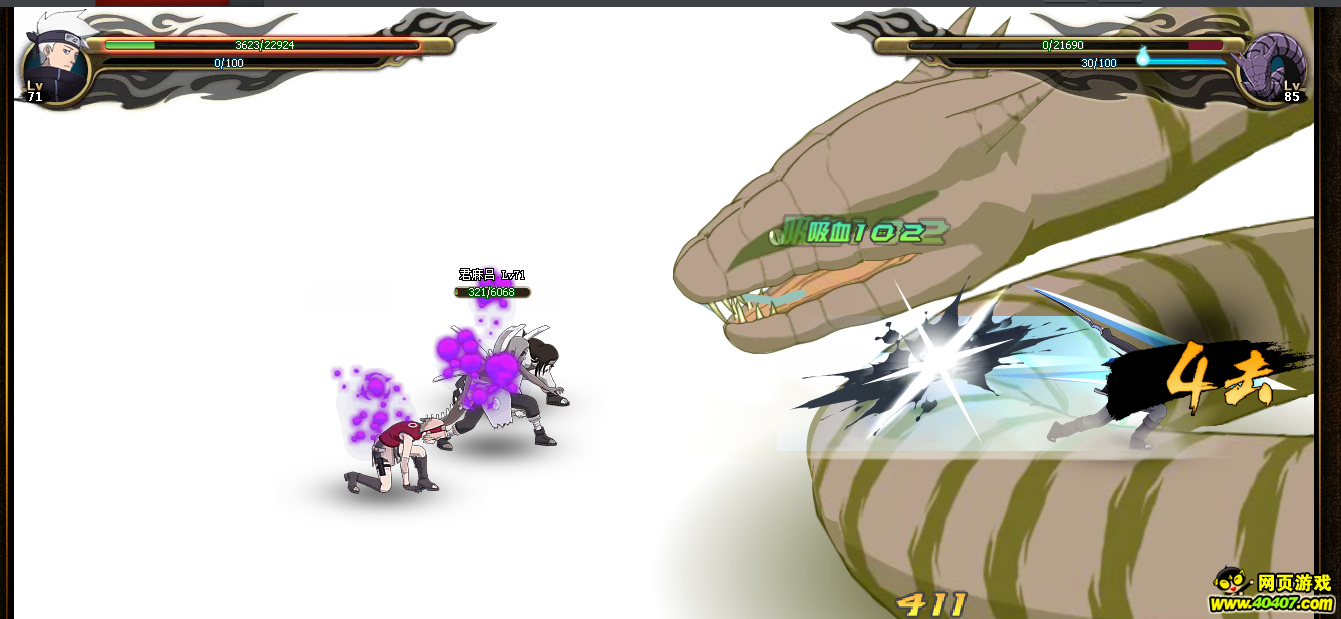 2、大蛇出来普攻不能有人死,然后再打断技能