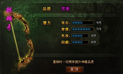 首先,我们应该要知道了解关于神器的质量品质。各个神器有品质优良之分,划分道理也非常的简单,按颜色划分。颜色分为四种,即绿色、蓝色、紫色、橙色,这样的排列顺序即由良到优,绿色最差,橙色最优。只要玩家们收集了40个五彩碎片,那么就有了开启宝箱的资格,这样玩家们即可获得了紫色神器。当然,玩家们也可以利用五彩碎片与其他玩家进行交易,但是若开启了神器,那么系统就不允许各位玩家们随意进行交换了。很多追求精益求精和更高境界的玩家们,意在追求极品神器,那么这就包括了麒麟弓。首先,在市场中神器的流通性非常的大,玩家可以通过沟通进行购买。其次,就算一时得不到非常极品的神器,那么我们可以通过一些品质较低的神器进行分解,这样各位玩家们也会得到想要的极品神器。自此,小编想说的是,麒麟弓并没有玩家们想象中的那样难得到,相信玩家们通过种种途径也能梦想成真。