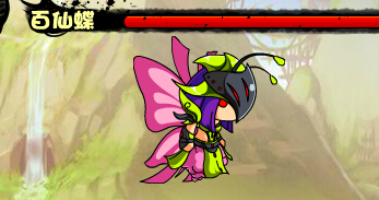 战斗开始后的40秒后会进入第二形态,就是蛹形态。再蛹形态的40秒后进入最终形态,蝶形态。蝶的技能还是比较强悍的,首先是地面上的两种攻击方式,第一个是通过毒气横向的推进攻击,中招会随着毒气飞行,BOSS以此拉开与玩家的距离,并且此技能还是比较疼的,另一种是近距离时发动的击退技能,但是BOSS不是经常发动此技能。BOSS除了地面攻击外还会使用空中技能,飞天后会使用散状的毒气攻击玩家,好在毒气的方向是固定的,百仙蝶飞天后就会马上发动,所以站在BOSS身下是躲避这个攻击最好的方式。