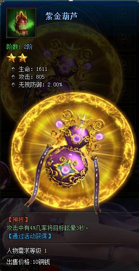 紫金葫芦最近因其技能突出而受到各位玩家们的热捧,所以小编整理了一份紫金葫芦的进阶数据以此提供给大家参考,希望各位玩家们因此受益。