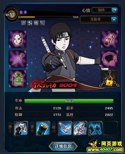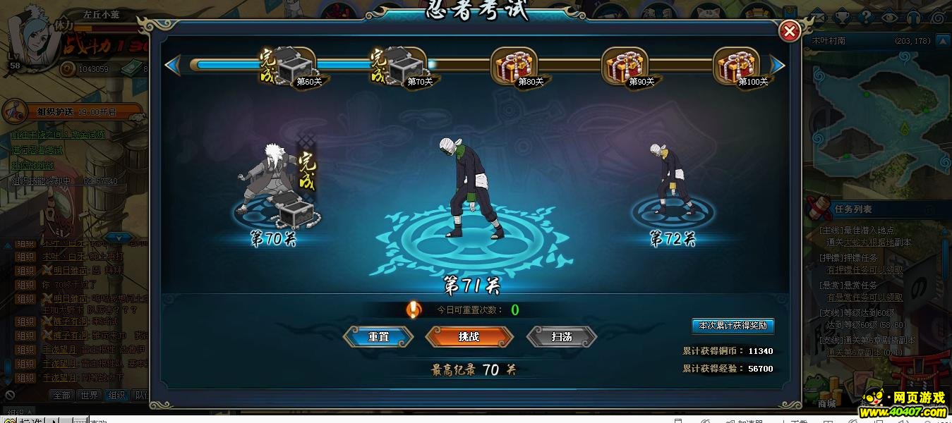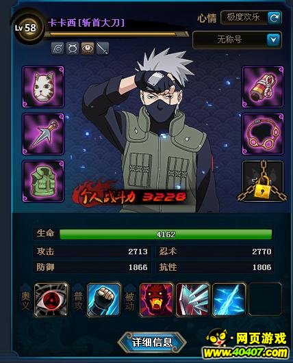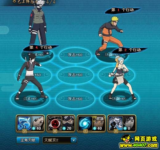 第一轮:在考试开始时,就让左井放狗,其他人保持普攻就行。在第4回合自来也死亡前,让鸣人和卡卡西奥义,即可进入第二轮