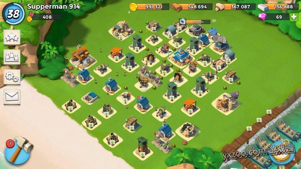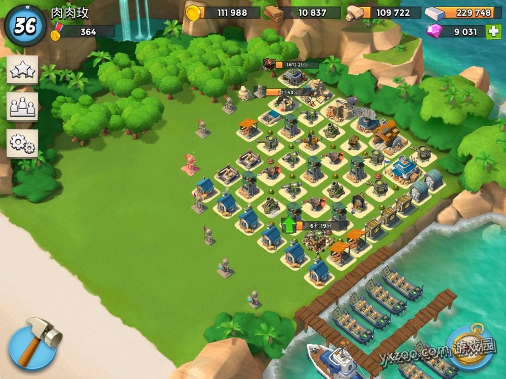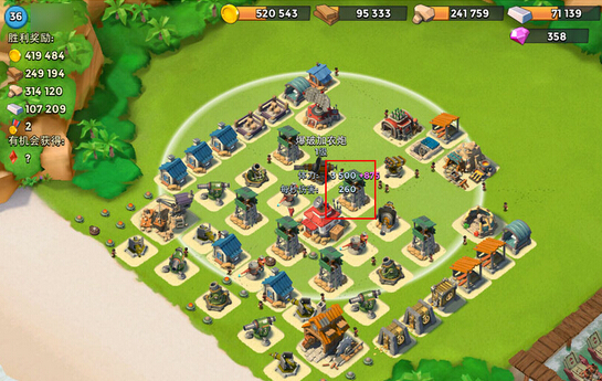因为我是偏攻击的,防御等级很低,从图上也可以看出像狙击塔甚至有几个绿帽子都还没有,对于像胖子妹妹或者坦克医生这样的组合防御能力偏弱,但是因为没有太多可以偷的建筑,对方获得能量不会很多,还是可以对敌方完成不小杀伤,即使防不住宝石还是能拿几颗。