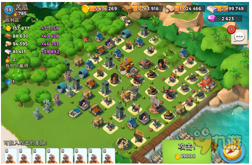 2、阵型的最外层是大量的高等级加农炮和巨型加农炮,这些防御建筑是坦克的克星,可以对坦克造成大量的伤害。