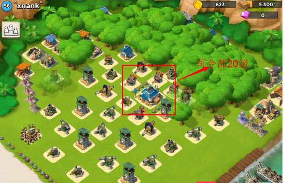 1、此阵型不同于一般的躲角阵,是将司令部放置在阵型的中央位置,这样对防守坦克上很有帮助哦。