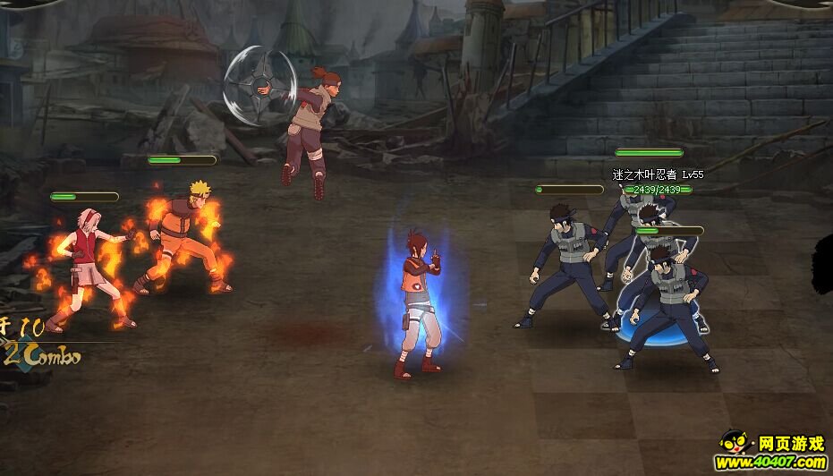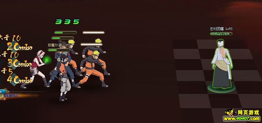 第一回合利用查克拉回复术卡出10连,重点当伊鲁卡出手时,伊鲁卡手里剑打4号位,火主凤仙火打3号位,前提是火主出手要比敌方三号位快才能出10连,直接进入第二回合