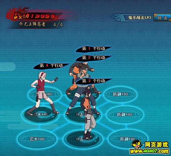 第二回合小樱立即释放加血技能,火主行动后鸣人技能打二号位木头人,第三回合一般情况火主,鸣人,伊鲁卡会被封印,直接进入第四回合。起手鸣人秒掉 二号木头人,火主对1号位喷火,带飞两个,普工带飞1个。如果战力低应该可以在这多刷一回合技能(但我没试过),留住三号位木头人是因为小樱加血火主血容 易满不能红莲秘术了。
