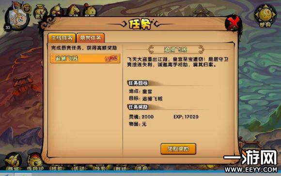 当你打败飞天大盗之后,就会传送到须弥山,并完成悬赏任务。记得点击一下榜单领取奖励哦。