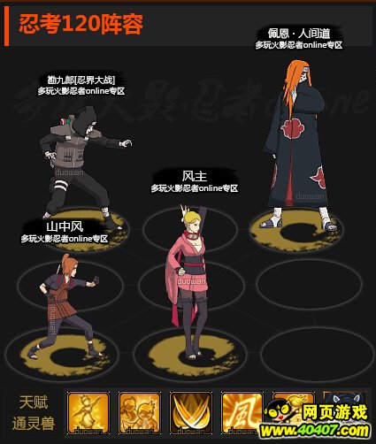 ps:我个人还是推荐120带山中风毕竟可以给人间道一个盾,井野虽然也可以但是加血这个用处不是很大。而且山中风可以自己回血,存活能里比井野要高。