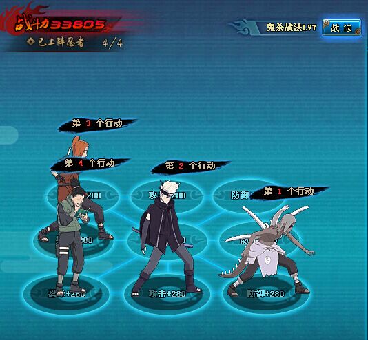 2、第二回合:等对面水主放完奥义后,立刻雷主奥义卡卡西,注意好色鹿丸不能被麻痹,卡卡西要被定身打断技能;好色鹿丸奥义回查克拉,中风奥义混乱水主(如果水主不能被混乱,重来),注意君麻吕或许会剩一丝血量,但是不能死,死了刷新;