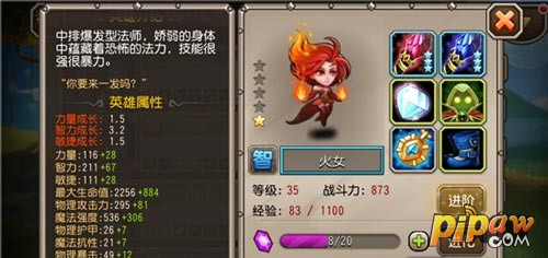 两个火女同时进阶后发现,她们的基础属性完全相同,附魔的属性随着装备被英雄吃掉后全部变成了附魔材料返还给大家,所以说附魔的属性进阶之后不会被吸收。可能有细心的玩家发现两张图中火女的战斗力不一样,是因为技能等级的原因。