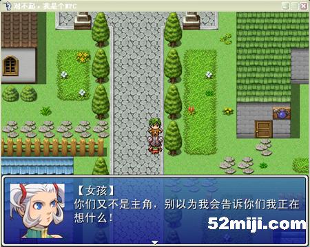 这个游戏试图让玩家换一个角度以NPC的身份体验一下熟悉的RPG流程,也算是为我们惯常所忽视的NPC们报一次仇吧……另一方面,其实不管是怎样的小NPC,一旦把目光移到他身上以他的视点展开故事,他也就不再是NPC而是主角了,所以这游戏也同样可以视作一个完整的RPG来玩。