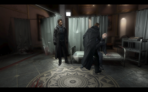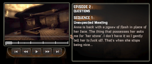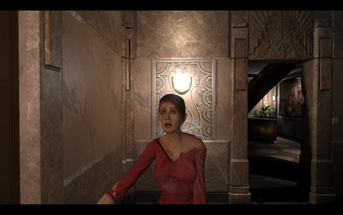 女主角欢乐的到来,欢乐的说了句F**k后.拿起西洋剑,砍了保安的手(有够血腥)指纹验证后开门.一路小跑杀了2个怪后炸开门就可以看到那个神秘的房间了