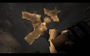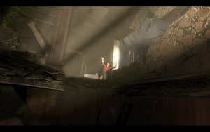 随后,就可以在第一/第三人称视角互换了.上了电梯上层进入剧情,貌似一切的起源都和老者身上的石头有关,在对话中主角也感到老者也是一个很重要的NPC..(为什么是NPC),对话到一半,灵异的事情发生了,那条裂缝又出来了,吞噬了路人甲后 向着那个貌似也很重要的NPC袭来.老者让男主角自己离开,么法"抛弃"了老者,爱德华自己逃生了.继续一路爬上梯子后,降下消防水管后(遇到风扇的地方使用空格