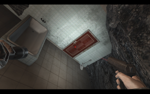 sh*t 我的裤子进入房间后,在柜子里发现医药喷雾,按H进入疗伤模式(大师啊).疗伤完毕后之后房屋又会震动开始坍塌,主角在掉楼下坠的途中拉在一墙壁装饰物上逃过一劫.(慢动作很帅哦=w=)