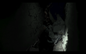 没走多远,红衣女子就被裂缝吞噬了,爱德华就踏上了一个人的路程.在断层里用书桌做垫板上到上层后,爬上左手边的墙缝关闭电闸,下落到上层后继续走.小心在黑暗中行走.直到到达保安处。