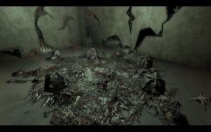 由于制作组的偷懒,一开始你会发现红点背保护膜保护着,需要烧到75的鬼眼才能扔燃烧瓶进去烧魔根,兄弟们烧外面的练级吧.需要注意的是,有几个在高处的干扰源需要飞车或绑定时炸弹,就在我们烧啊烧,烧到75后扔个汽油弹进保护膜世界就变的和谐了,我们就能进入最后的据点.进入后打破绳环,闭眼看墙壁,下降。