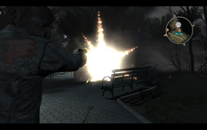 游戏并具备组合物品系统了,玩家可以把许多物品搭配起来使用,变成一个新的物品。例如当身上有汽油罐时,可以拿刀子把罐子戳破后丢掷出去再点火;或是黏上胶带贴在特定地方,等怪物经过时射击罐子引爆,配合上各种不同的道具,变化度相当丰富。