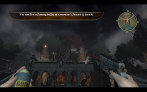 游戏当中强调和环境互动的效果,当玩家在逃命时,必须利用建筑物或物品掉落的瞬间跳跃或攀爬过去,错失机会很可能就会导致死亡。而遇到一大群的怪物时,也可以先看看附近有没有易燃的物品,丢过去之后再射击或点火,可以把怪物一次杀光。