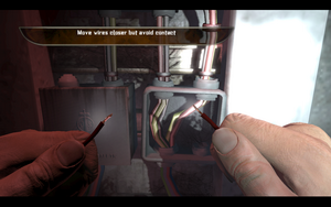 进入里面的小房间,拿到绷带,这时候那个医生就会发邮件给你,教你如何使用绷带(H嘛~)完事后,发现一个电线挡住了去路,解决方法如下图