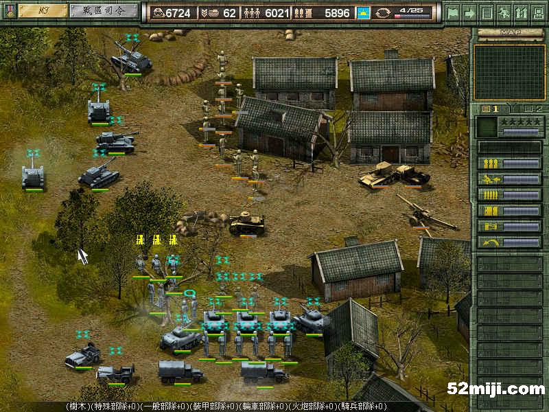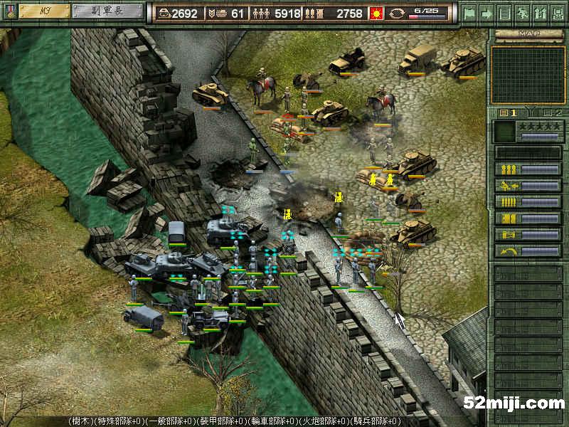 本关左边要派步兵沿小路上山偷袭敌人,主力部队则慢慢爬山攻击前进,山路难行极了,伤亡数字为0恐怕很难,没有别的窍门,一个字:打!注意协防和助攻。