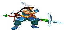夏侯渊:威力大,防御技巧一流,攻击范围远,速度快,又常会和玩家碰撞(惨的是玩家还每碰必输)它可以说是集所有魔王优点於一身,只可惜的是上帝造人绝无完美,与他对战时,首先一定要将帮助他的小兵清掉,以打代跑兼放道具的方式(说难听点就是龟,但是对付他绝对不能和他正面交锋),如攻击他时若他用碰撞,玩家便释放超必杀技,他若防御,就马上闪人放铁莲花,待他中招时,马上请他吃必杀技,如此一来,再强的魔王也敌不过鲸吞蚕食的侵袭。