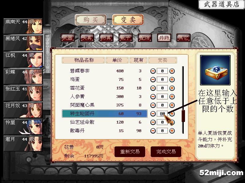 进入任何一家商店,选择出售物品,点击出售数量所在处,输入低于持有物品数量的任意数值