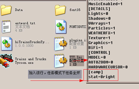 在新铁路大亨游戏目录下找到“TTT.ini” 文件,可用记事本打开: