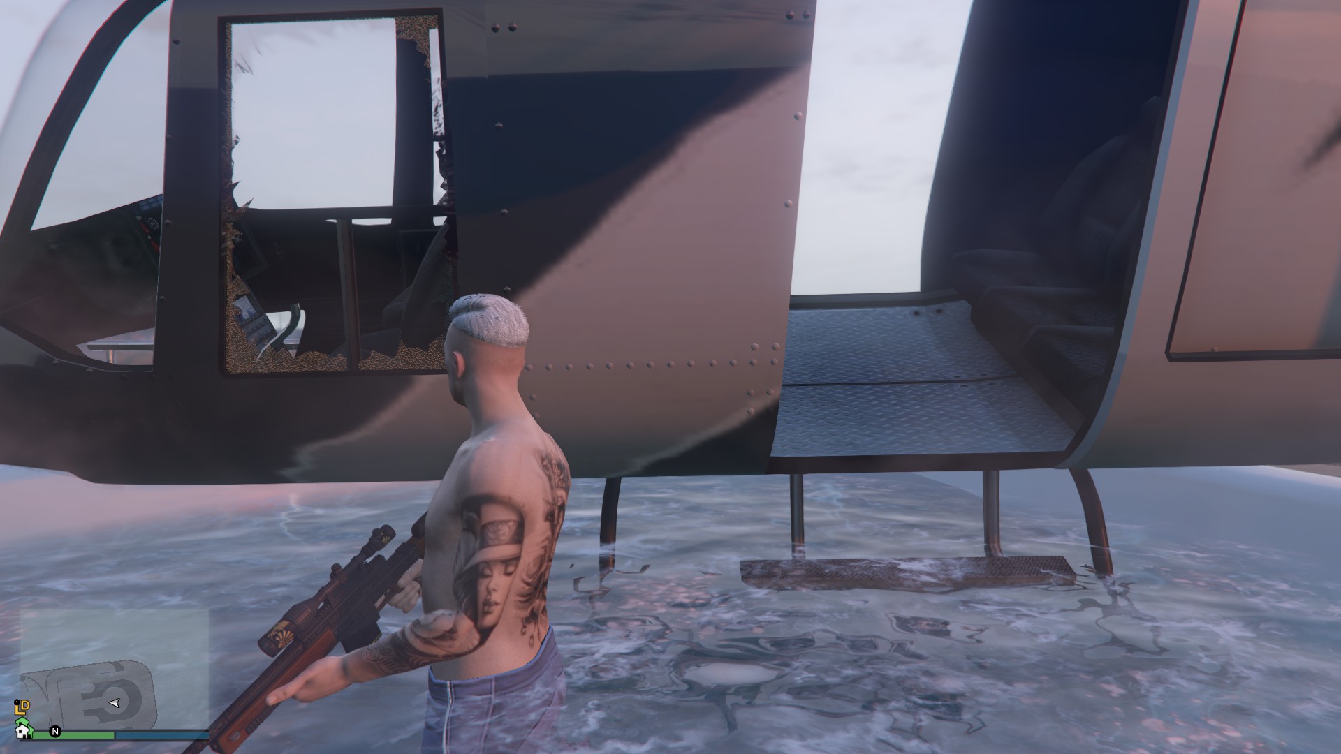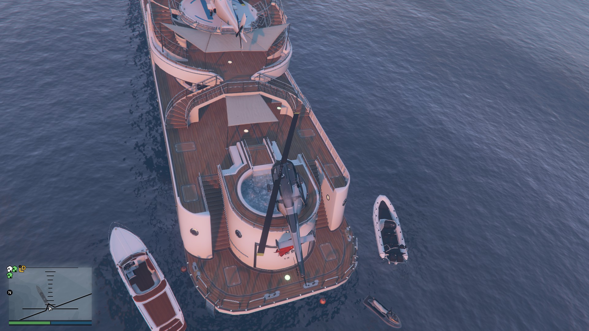 找一架飞机,开到游艇的泳池里面 如下图位置