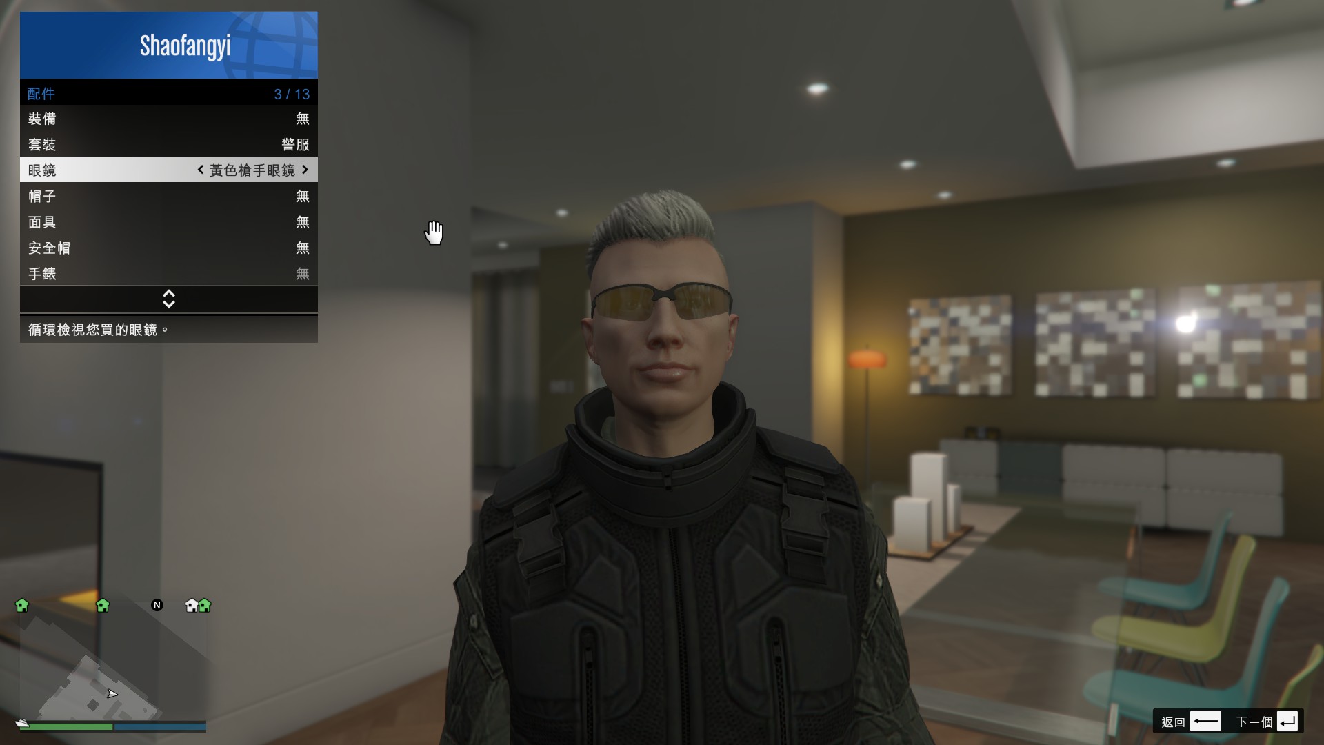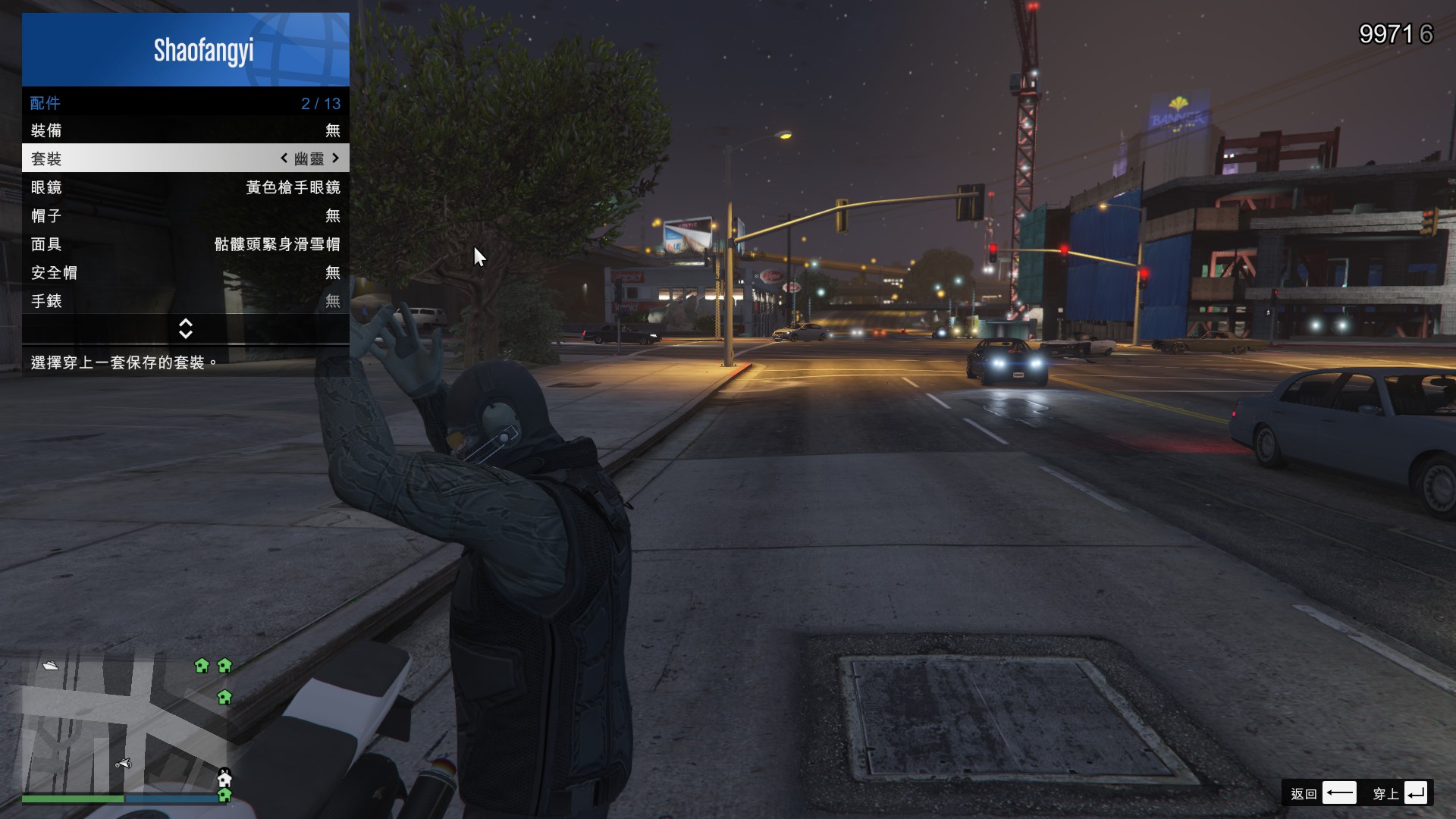 打开M 下车 然后在他脱下帽子的时候,把套装调成之前保存的面具眼镜套装