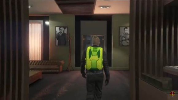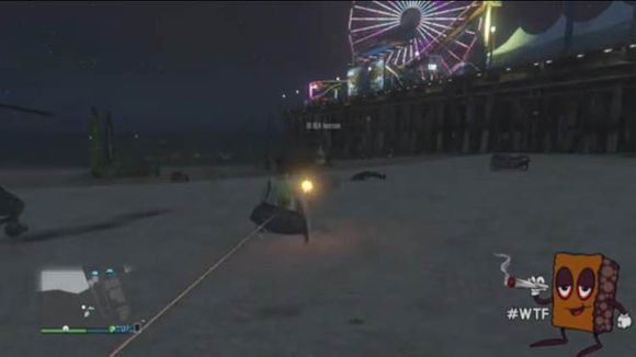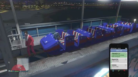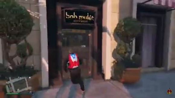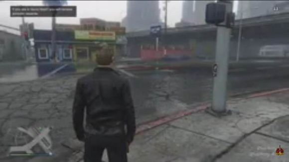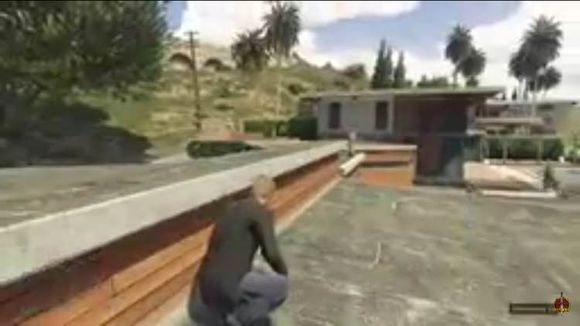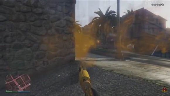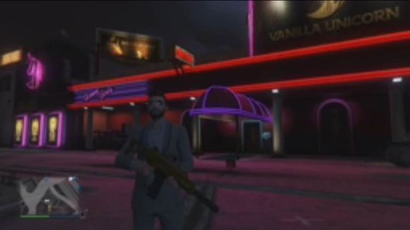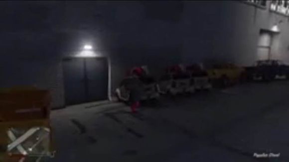 首先你要把SUV停到这个位置(如图),然后爬上SUV走进墙壁里,现在你一进去就会显示你在私人表演区域,让你走开,现在调成第一人称,然后走向舞台,然后扔钱,现在钱就会变成枪啦!
