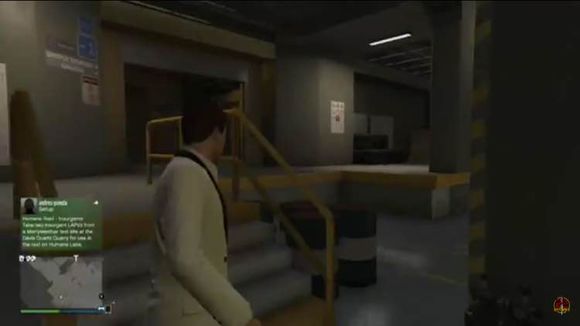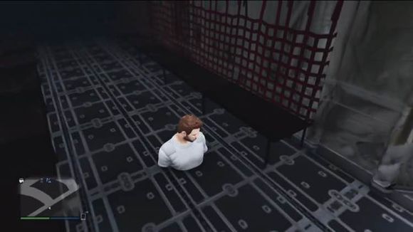 我们首先走到这个位置(如图),然后到两根蓝管子中间,然后重复前面的步骤,打开手机—差事菜单—随便进一个NPC任务—再退出来—你就进人道实验室了!