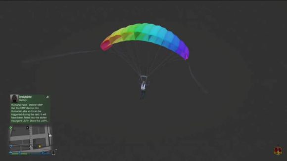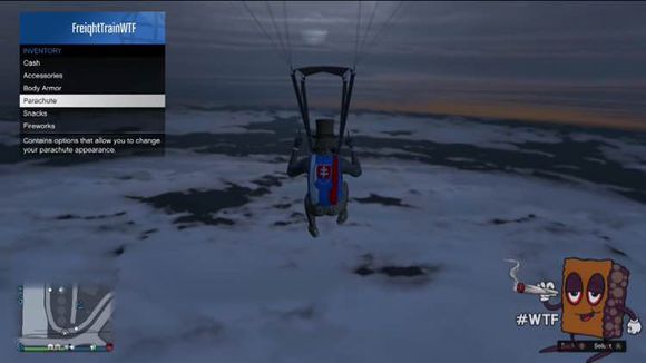 首先购买智利的降落伞包,然后随便进一个画妆坐下,然后退出,你就会有降落伞啦!