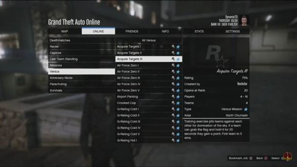 1、首先你要一个陌生人的任务邀请(公开战局多的是)、一个GTA5单机角色的任务