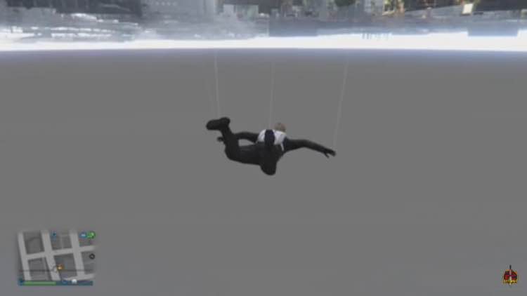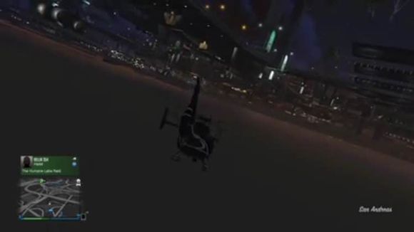 首先你要一架普通的直升机,然后开到这个地点(如图)然后把飞机侧着飞到里面再飞起来,再降下去,你就到地图里面啦!