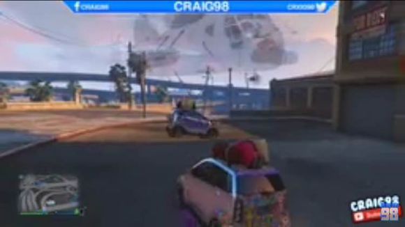 然后你把这辆车再开出去,现在你基友会吊着你那辆车车,然后让他开被动模式,然后你用黏弹把吊着的车给炸了,然后再打给保险,把车给要回来,现在你开回车库就会显示车库已满,现在把你那辆不用的车给替换了,你就复制一辆车啦!