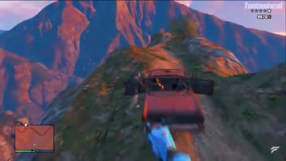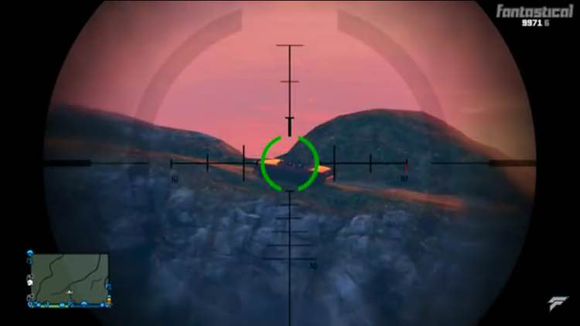 13、然后是这辆古董车,首先你要来到这个地点(如图),你会看到对面会有警察和那辆老爷车,现在把老爷车上的驾驶员给狙了,然后迅速到山对面,然后开车,买保险,放车库