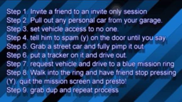 需要两个人,一辆满改哑剧(估计能卖20W以上)。大量叛逆男女流程:先把叛逆男女开出来,把上车权限设置成没有人,然后让基友不停开你的车门,直接回到车库把哑剧开出来,然后控制面板请求载具,再把哑剧还回去,替换随便一个叛逆男女。 (卖车有45分钟)