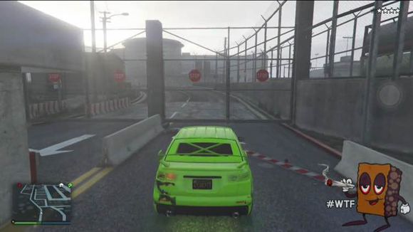 2、开车开到军事基地门口如图,你就会获得4星通缉