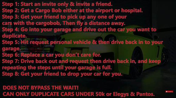 开出车库后,再下车,再点呼叫载具,你车库里的车就会刷出来的,现在你就开出去,按请求载具,一直刷(建议哑剧,可以刷钱)